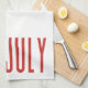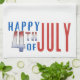 Patriotiska kökshanddukar har texten "Lycklig 4 juli" i rött, vitt och blått med "4th in a shimmery glitter fill".