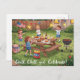 Ett vykort med roligt som spricker med mycket inslag i rött, vitt och blått Stars och stripes för att önska dina vänner och familj en Lycklig 4 juli. Den blå bakgrunden kan ändras till ett annat färg om du så önskar.