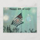 Ett speciellt vykort för Independence day. Den har en amerikansk flagga på den och några stjärnor och fyrverkerier.