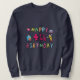 Lycklig 4e födelsedagen. Lustigt och söt Birthday-design med underbar nalle som håller en gåva och en rolig penna som skriver födelsedagspressen önskemål. En matchning mellan perfekt och kläder, skjortor och tillbehör.