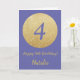 Lycklig 4e födelsedagen - Peri- och Guld Glitter-kort med personlig namn. Om du vill göra ytterligare anpassningar klickar du på knappen "Anpassa" och användor verktyg som är utformat för att ändra mallen.