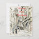 Rue Damiette, Rouen (ca 1884) av Camille Pissarro. people , art , vintage , byggnad , design , stad , illustration , public domain