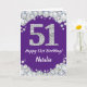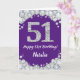 Lycklig 51:a födelsedagskortet Lila och Silver Glitter med personlig namn. Om du vill göra ytterligare anpassningar klickar du på knappen "Anpassa" och användor verktyg som är utformat för att ändra mallen.