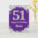 Lycklig 51:a födelsedagskortet Lila och Silver Gli Kort