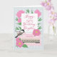 En skrivmaskin för rosa vintage omgiven av peonblommor och löv med en vattendropp på skrivmaskinen. En biet papprare från skrivmaskinen har den handskrivna ord Lycklig 56:e födelsedagsdottern. Ett underbart födelsedagskort för din dotter! © Ness Nordberg