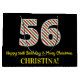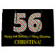 Den här roligten och den enkla julteman och den 25:e födelsedagspressformade presentsäcksdesignen i december har ett stort nummer "56", med en grönt, vit och röd rand mönster. Det innehåller också budskapet "Lycklig 56:e födelsedag och God jul" och personlig namn. Bakgrunden är svart på färgad. En presentpåse som denna kan användas när man slår in presenter som ges till någon som föddes på juldagen (25 december) och som firar sin 56-årsdag. [~Z0000407]