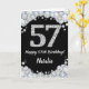 Lycklig 57:e födelsedagskortet Black och Silver Gl Kort