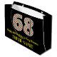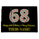 Den här enkla och roligt julteman och den födelsedagskalematerade presentsäcksdesignen för 25-årsdagen har ett stort nummer "68", med en grönt, vit och röd rand mönster. Det innehåller också budskapet "Lycklig 68:e födelsedag och God jul" och ett anpassade namn. Bakgrunden är svart på färgad. En presentsäck som denna kan vara roligt till användan när man slår in presenter eller gåvor som ges till någon som föddes den 25 december (juldagen) och som firar sin sextioåttonde födelsedag. [~Z0000407]