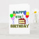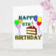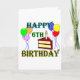 6e Grattis på födelsedagen med tårta - Födelsedag för en speciell 6e-födelsedag, ballonger och en bit kaka med ljus. Den här designen har mycket söt i alla färg av ballonger, en GRATTIS PÅ FÖDELSEDAGEN-banderoll och i mitten. Underbar för den speciella sexåringen! Låt oss vara de första att säga "Grattis på födelsedagen"! Anpassa den här designen genom att lägga till en namn!