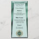 En elegant-meny med grönt och folie mönster och ditt unika födelsedagsnummer i glitter och guld.