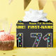 Den här roligtens födelsedag är ett stort nummer "71", fyllt med mönster av dekorativa stjärnformer med olika storlekar och färg. Det innehåller också budskapet "Lycklig 71:a födelsedag" och en personlig namn. Bakgrunden är svart på färgad. Roligt som är papper som denna kan användas när man slår in presenter som ges till någon i firande på deras sjuttioårsdag. [~Z0000429]