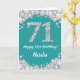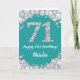 Lycklig 71: a födelsedagen: Teal Turquíque Aqua och Silver Glitter Card med personlig namn. Om du vill göra ytterligare anpassningar klickar du på knappen "Anpassa" och användor verktyg som är utformat för att ändra mallen.