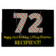 Den här enkla julhelgen och roligtens julhelg och födelsedagskalemat december 25:e födelsedagspresentsäcksdesignen har ett stort nummer "72", med ett rött, vitt och grönt rand mönster. Det innehåller också meddelandet "Lycklig 72:a födelsedagen & God jul" och ett eget namn. Bakgrunden är svart på färgad. En presentsäck som denna kan vara roligt till användan när man slår in presenter som ges till någon vars sjuttioandra födelsedag infaller på juldagen (25 december). [~Z0000407]