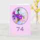 Ett enkelt men elegant 74-årskort med en blommålning. En målning av en vas av blommor är inramad i daisy. Hela rosan befinner sig på en känslig bakgrund. Det inre meddelandet kan ändras till dina behov.