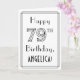 På framsidan av denna lyxiga leksakskonst deco-inspirerad hälsningskort finns meddelandet "Lycklig 79:e födelsedag", tillsammans med en anpassningsbar som tar emot namn. Siffran "79:e" på framsidan har ett fodrad utseende från finare, och det finns också ett gräns som är uppdelat i flera rader. Insidan har ett hälsning-meddelande från anpassadets födelsedag, eller kan kanske rensas och lämnas tomt om ett meddelande ska skrivas för hand i stället. Ett sådant här hälsningskort för anpassadets födelsedag kan skickas i firande på någons sjuttionionde födelsedag. [~Z0000641]