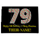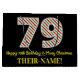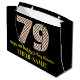 Den här roligten och den enkla julteman och den 25:e födelsedagskalenderpresentsäckens födelsedagsdesign har ett stort nummer "79" med en grönt/vit/röd rand mönster, tillsammans med meddelandet "Lycklig 79:e födelsedag & God jul" och ett redigerbart namn. Bakgrunden är svart på färgad. En presentpåse som denna kan användas när man slår in presenter eller gåvor som ges till någon vars sjuttionionde födelsedag infaller den 25 december (juldagen). [~Z0000407]