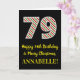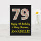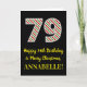På framsidan av denna enkla och roligt julfest och födelsedagstest december 25:e födelsedag finns ett stort nummer "79" med grönt/vit/röd rand mönster, tillsammans med meddelandet "Lycklig 79:e födelsedag & God jul" och ett anpassade namn. Bakgrunden till framsidan är svart färgad. Insidan innehåller ett hälsning-meddelande från anpassadets födelsedag, eller kan kanske tas bort och lämnas tomt om ett meddelande ska skrivas för hand i stället. Ett sådant här födelsedagskort i personligen kan vara ett roligt för att erkänna någons sjuttionionde födelsedag som också infaller på juldagen (25 december). [~Z0000405]
