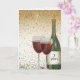 Grönt vin flaska med två röda vin i glasögon och konfekt för 7:e bröllop-årsdagen.