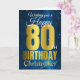 Ett fantastiskt blått och guld-effektfödelsedagskort. Det här temat är perfekten för att önska någon en "80-årsdag i lycklig". Anpassa med eget namn och eget meddelande. Guld och vit typografi på universum.