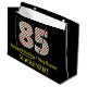 Den här enkla julhelgen och roligtens julhelg och födelsedagseftermiddagen december 25:e födelsedagsäcksdesignen har ett stort nummer "85" med grönt, vitt och rött rand mönster, tillsammans med meddelandet "Lycklig 85:e födelsedag och God jul" och ett redigerbart namn. Bakgrunden är svart på färgad. En presentpåse som denna kan vara ett roligt för att slå ihop gåvor som ges till någon som föddes den 25 december (juldagen) och som firar sin åttiofemte födelsedag. [~Z0000407]