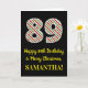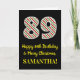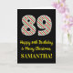 På framsidan av denna enkla och roligt julmatade och födelsedagstäckande 25-årsmatrisdesign finns ett stort nummer "89" med en grönt/vit/röd rand mönster, tillsammans med meddelandet "Lycklig 89:e födelsedag & God jul" och en personlig namn. Bakgrunden till framsidan är svart färgad. Insidan innehåller ett hälsning-meddelande från anpassadets födelsedag, eller kan kanske tas bort och lämnas tomt om ett meddelande ska skrivas för hand i stället. Ett sådant här födelsedagskort i personlig kan vara ett roligt för att sända ett budskap i firande om någons åttionionde födelsedag som också infaller den 25 december (juldagen). [~Z0000405]