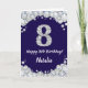 Lycklig 8:e födelsedag Blått och Silver Glitter Kort