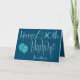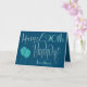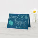 En design med elegant i blå nyanser för 90:e födelsedag. Grattis på födelsedagen är blått i ett dekorativt skript och åldern är i ett samordnande stil i mjuk teal, tillsammans med mottagarens namn, på blå bakgrund. Du kan ändra meddelandet inuti till ditt eget hälsning. Faux glatt teal ballonger tillför perfekten avslutande beröring på framsidan! Samma blåa färg fortsätter på insidan.