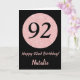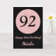 Lycklig 92:a födelsedag Svarta och Ro Rosa Guld Kort