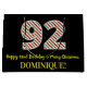 Den här enkla och roligt julteman och den födelsedagskalematerade presentsäcksdesignen för 25-årsdagen har ett stort nummer "92", med en grönt, vit och röd rand mönster. Det innehåller också budskapet "Lycklig 92:a födelsedag och God jul" och en personlig namn. Bakgrunden är svart på färgad. En presentsäck som denna kan vara roligt till användan när man slår in presenter eller gåvor som ges till någon vars nittio andra födelsedag infaller den 25 december (juldagen). [~Z0000407]