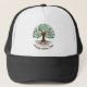 Utformning av Lycklig arbordagen. Träd med grönt löv, bruna trunkarter, bruna rötter och, som i färg motsvarar parollen: Lycklig arbordagen