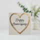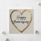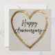 En elegant och en hjärtfilt som har ett stort, texturerat hjärta som är målat med ett tjockt, gyllene borstdrag. Inuti hjärtat skrivs texten "Lycklig-årsdagen" i ett känsligt svart skript. Utformningen är enkel men sofistikerad och ställs in mot en ren bakgrund med lätt färgad.