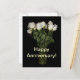 "Lycklig årsdag" text över ett foto av en vas med långskaftade vita rosor på svart bakgrund. *Jag har ställt in detta vykort att skrivas ut på obestruket Matt papper som standard. Du kan också välja Semi-Gloss istället, men vykortet kommer att skrivas ut på semi-gloss papper på båda sidor vilket är lite svårare att skriva på.