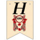 Den här flagga-formade banderollen Lycklig är en gulaktig kräm färg med en abstrakt design som är röd och svart med vallmoblommor och fjärilar. Texten Dreaming finns i en svart och röd cirkel. Anpassa Lycklig-årstexten med mallarna.