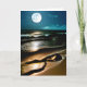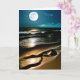 Lycklig-årskort med vackert vinkart hav, sandstrand och fullt på natten himlar.