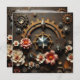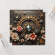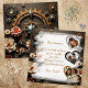 Söt personlig gothic Victorian steampunk fotomall Lycklig-årskort. Vackra korallblommor, guld, silver och kopparväxlar från metall. Baksidan har tre blanksteg för bilder i form av ett hjärta. Du kan även redigera texten i området Anpassa.