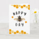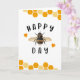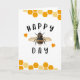 Färdkort för matsäck med en bild av humlor och bikakor i hand plockade. I texten står det "lycklig bidagen".