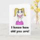 Lycklig Birthday Card, jag vet hur gammal du... Kort