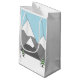 Snö slutade precis och en söt svart fågel sjunger glatt på tak i sitt snöhus. Fågelhuset hänger från gren. Landskapet skildrar en vinterscen med snö, gräs träd och berg. Denna illustration av tecknaden är en idealisk gåva till människor som love birds, vinter och musik.