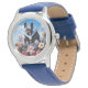 Lycklig Blue Fransk Bulldog & Flowers Armbandsur