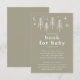 Vi presenterar vår beundransvärda babyduschdesign i Lycklig, perfekt för att fira att din lilla dyster kom. Den här charmerande designen har ett särskilt campingtema, komplett med illustrationer av träd, måne och stjärnor. Oavsett om du planerar en utomhusmatad babydusch eller bara kärlek i campingestesien är vår "Lycklig Camper"-design säker på att imponera på dina gäster och ställa in scenen för ett härligt firande.