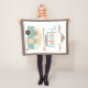 Cute digital art har texten "Lycklig Camper", Boho stil-pil, bergsilhuett och stil RV-reserv