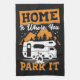 Lycklig Camper-hemmet är där man parkerar det Kökshandduk