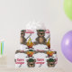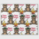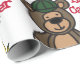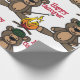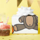 Camping nalle tecknad rostar en marshmallow på en campingbrand.