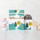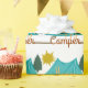 Toppen, söt camping och glamping Lycklig Camper-logotyp i tårblått, grönt, brunt, orange och gult.