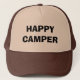 LYCKLIG CAMPER-truckerkeps för camping och färd. Lustigt citerar för manar kvinnor och kvinnor som kärlek går till läger med släpvagn eller RV. Anpassningsbar text. Resa humor. Viktig typografi. Brun eller anpassningsbar färg.