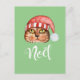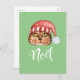 Den vita illustrationen av vattenfärgen visar att kattens ansikte leende med tomteffekt och texten "Noel" i det moderna, vita skriptet på ljust grönt bakgrund.