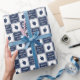 Backa ditt Hanukkah-presenter med det här moderna, skarpsinniga gåvomslaget! Tungt blått och vitt utcheckat mönster som växlar kvadrater med drömillustrationer och "Lycklig Challah Days" i modernt vitt typsnitt.