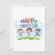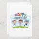En roligt med tre barn som firar barndagen i lycklig. Den här designen ser ut att vara verkligen i den här inbjudan