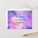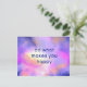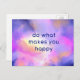 Ett vykort med ett inspirerande citat som säger "gör det som gör dig lycklig". Bakgrunden är en lysande rymdbild med eteriska molnformer och lysande stjärnor.