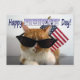 Önska någon en "Lycklig-dag" med detta patriotiska vykort från min "Kattunge Koolness"-samling, med en orange och vit katt klädd med en amerikansk Flagga bakom sig. Foto av designer.